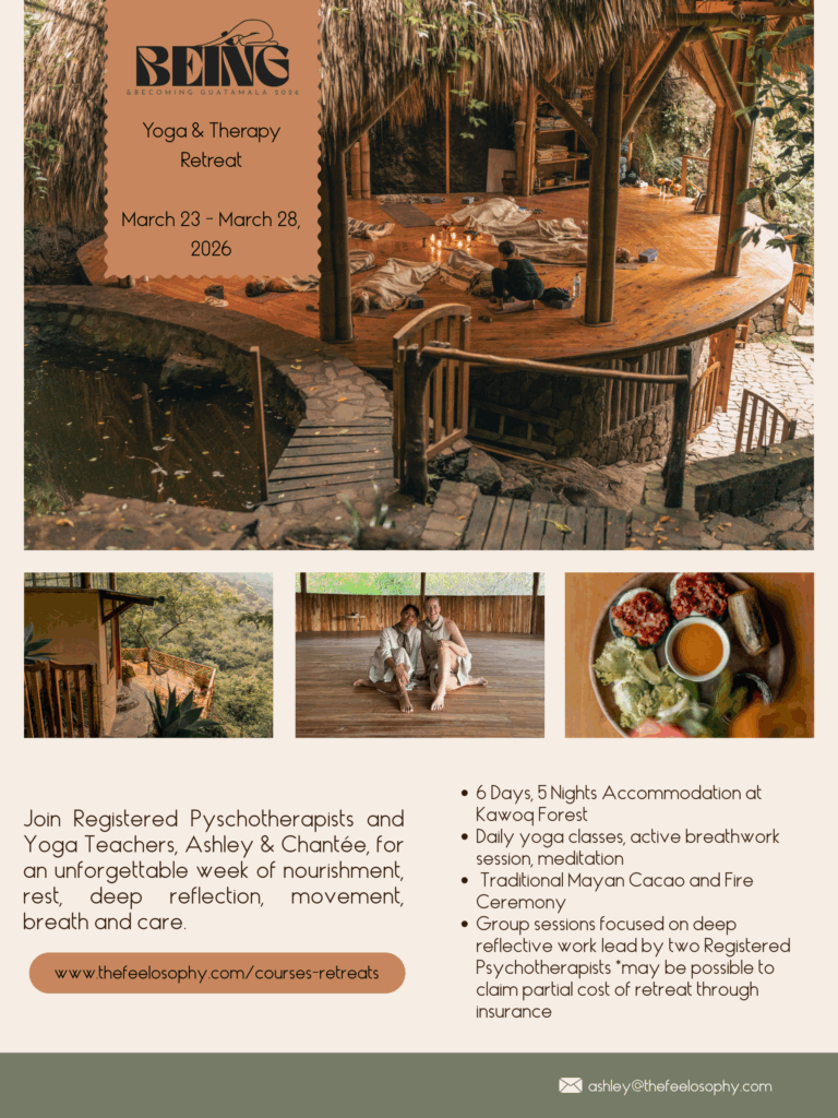 Feelosophy. With over 10 years leading retreats and a background in both movement and mental health, her work bridges the gap between the two. Ashley’s teaching is rooted in nervous system awareness, intuitive movement, and the philosophy of doing less, better. Her offerings blend restorative yoga, therapeutic touch, and somatic therapy to help people feel more connected to themselves. She has led retreats and trainings across Canada and beyond, always guided by a deep trust in the body’s wisdom. Ashley and Chantée blend together spirituality with Western Science to create a week of intentional time to connect to who you are being, becoming and remembering.