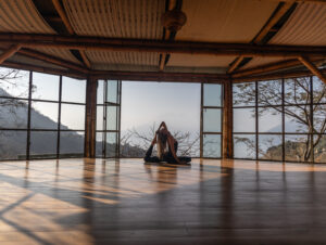 The Sol shala is our enclosed workspace space at Kawoq forest, offering a protected space during windy or rainy seasons and features incredible views overlooking Lake Atitlán.
