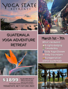 March 1–7, 2026 Hosted by Yoga State, Jen Hayes and Payton Howard Join us for an unforgettable 7-day yoga adventure in the amazing city of Antigua and on the breathtaking shores of Lake Atitlán, Guatemala. This immersive retreat blends daily yoga, meaningful cultural experiences, and adventure all surrounded by volcanic peaks, serene waters, and vibrant […]